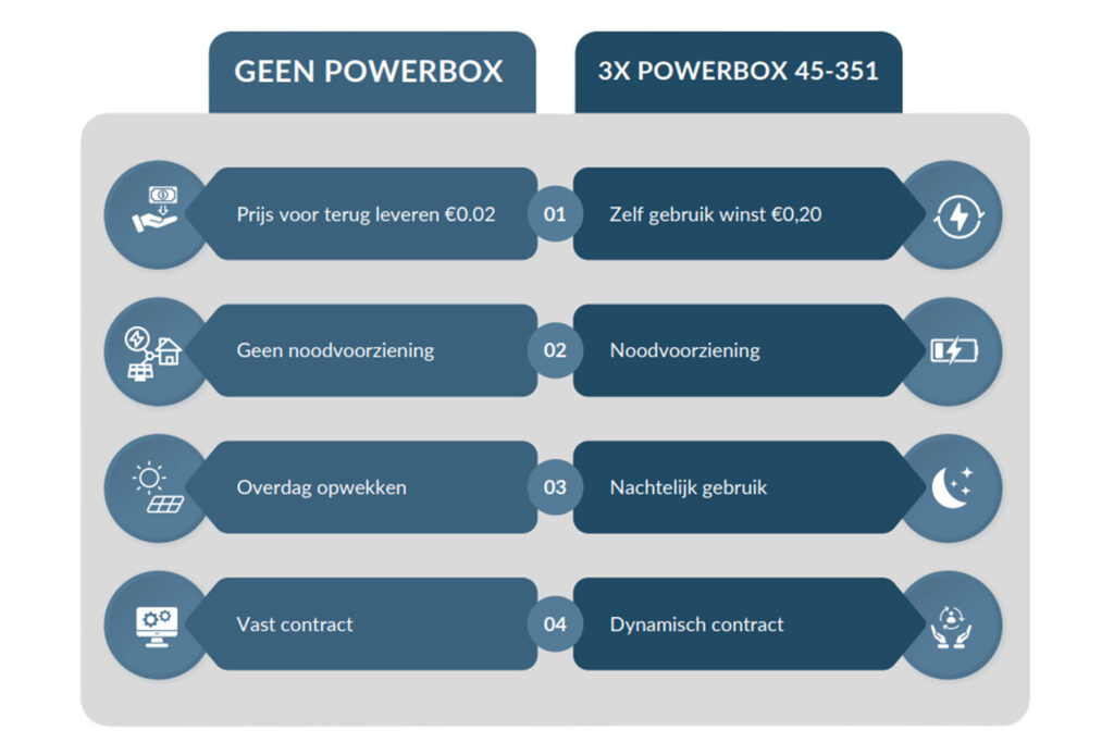 Wegens de salderingsregeling krijg je evenveel voor de overtollige zonnestroom die je op het net zet als je betaalt voor de stroom die je van het net haalt. De Nederlandse overheid wilde de regeling graag afbouwen vanaf 2025, maar dat idee gaat voorlopig nog niet door. De Eerste Kamer heeft dat wetsvoorstel namelijk weggestemd. Belangrijk om te weten is dat je dus voorlopig 100% kan blijven salderen met zonnepanelen, maar de vraag is of dat in de nabije toekomst nog zo blijft. Bovendien zullen energieleveranciers extra terugleveringskosten aanrekenen voor de eigenaars van zonnepanelen. Een thuisbatterij blijft dus zeker een toekomstbestendige investering!